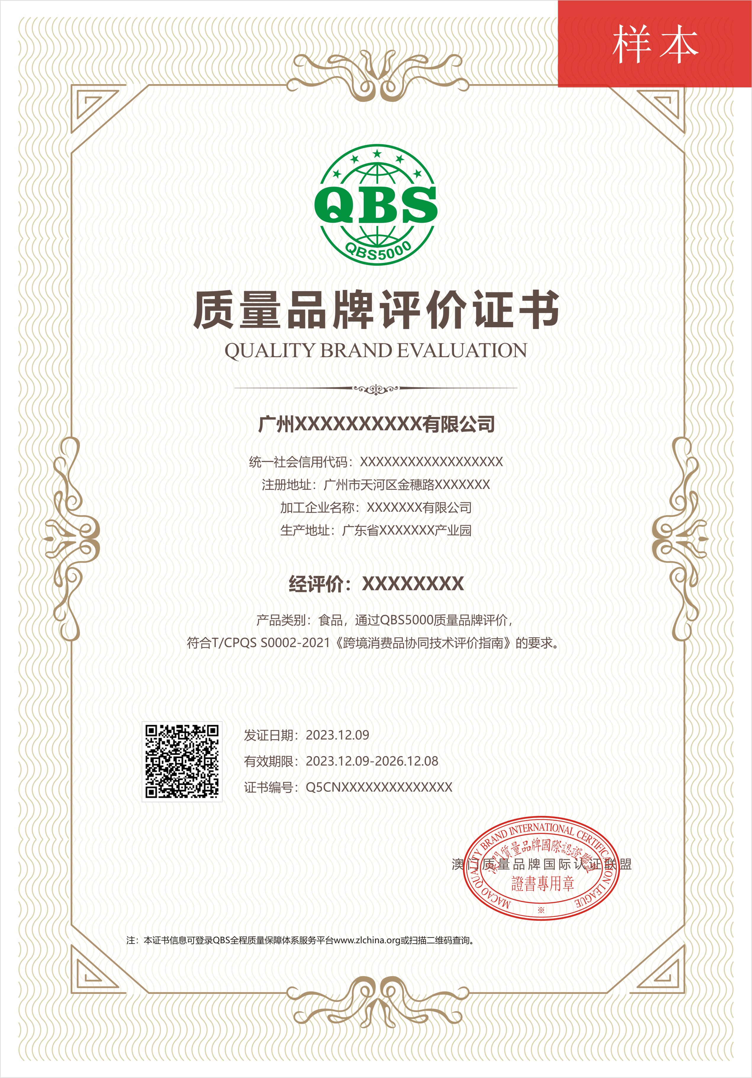 依据QBS5000质量品牌评价要求,企业通过信用审核,进行标准自我声明,提交符合QBS全程质量保障体系采信要求的检测机构和保险公司,出具的产品检测报告和产品质量保险保单。产品接受全生命周期全流程赋码溯源监管。接受产品质量品牌评价。