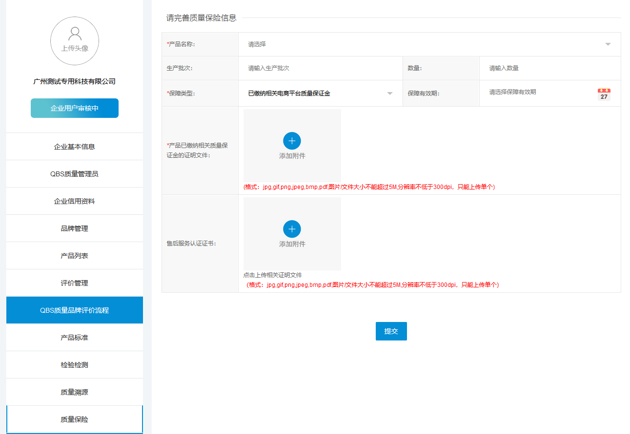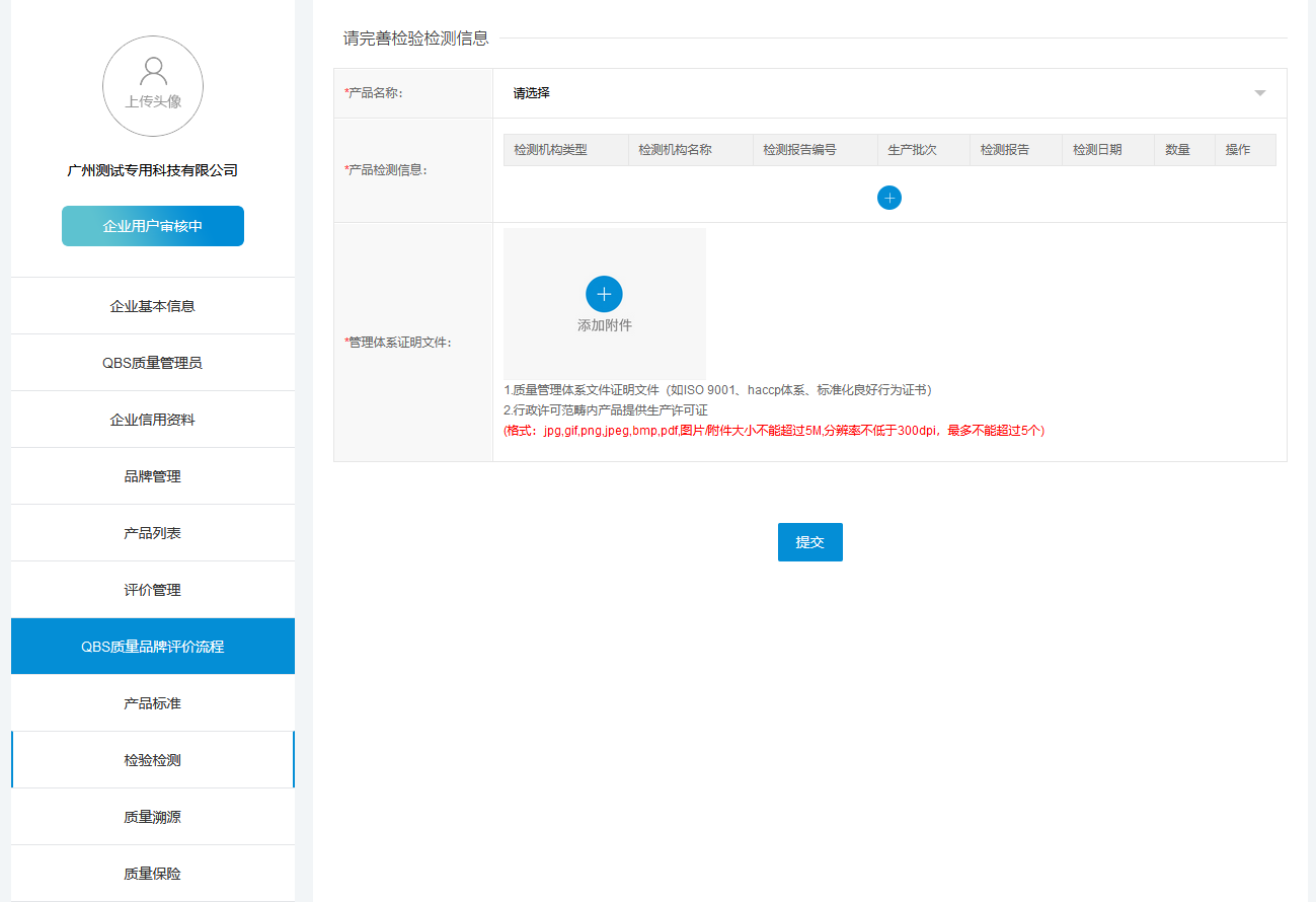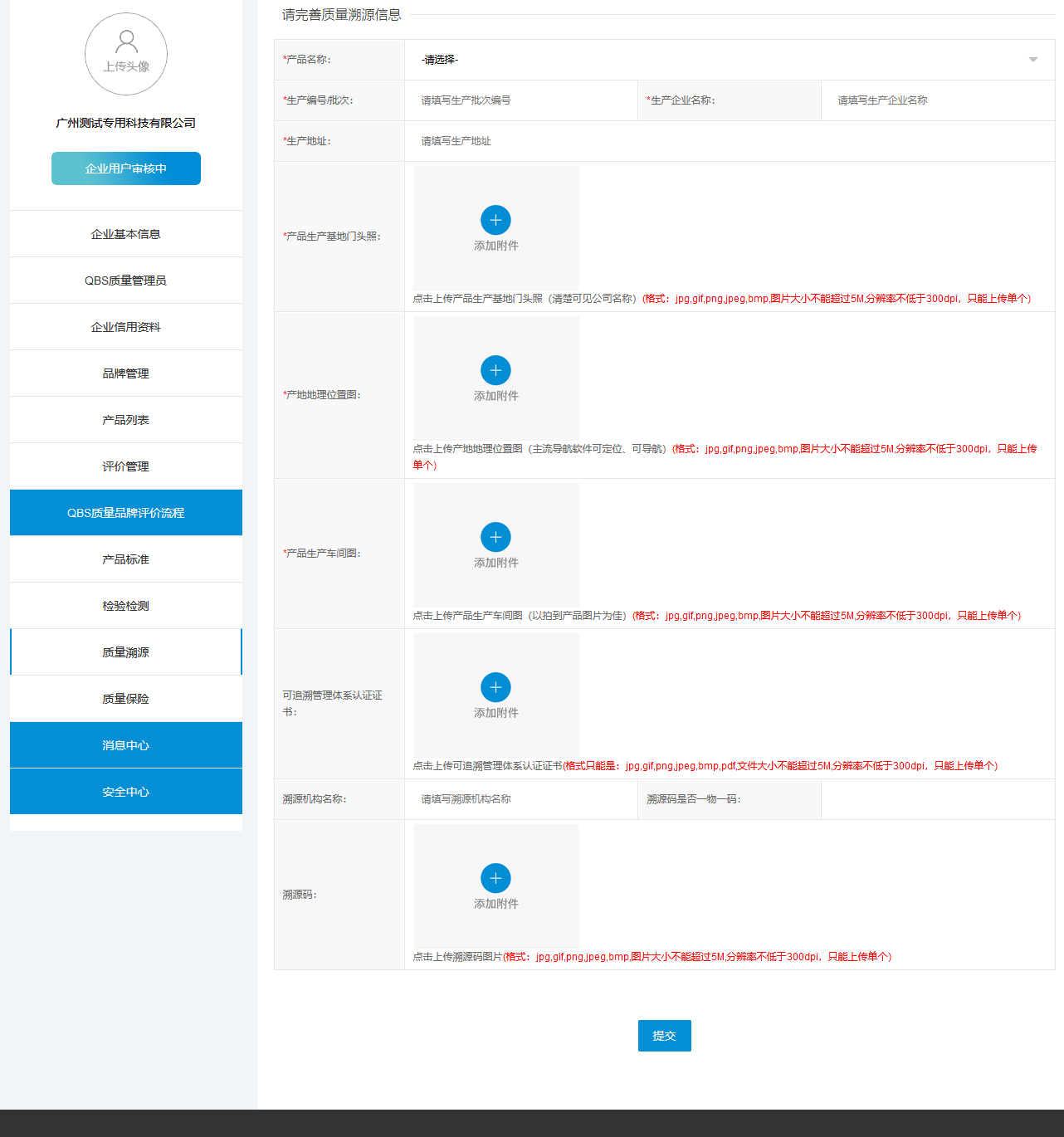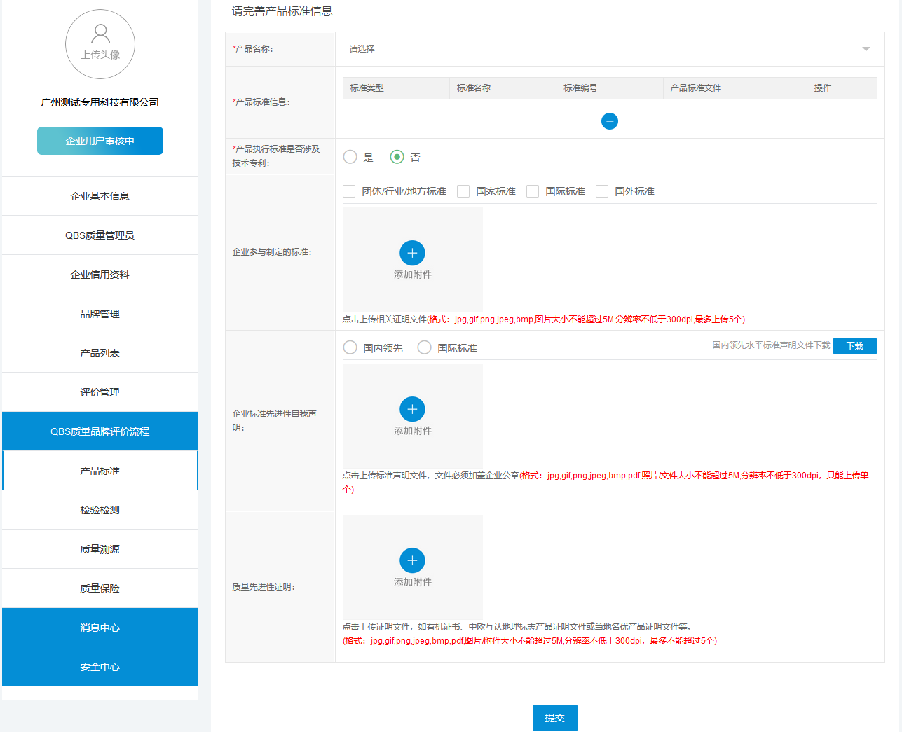 注册登录平台,申请参与QBS质量品牌评价。完善产品基本信息备案,依据QBS4000、QBS5000质量品牌评价要求提交信息。